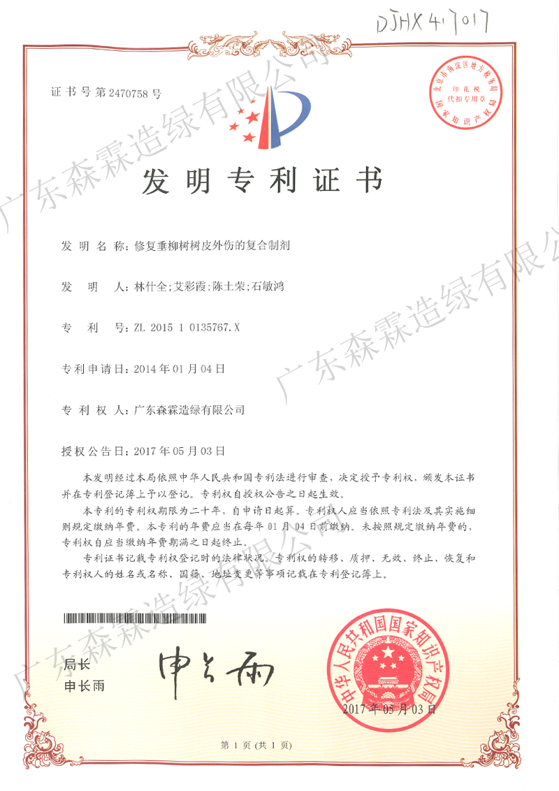 修复垂柳树树皮外伤的复合制剂