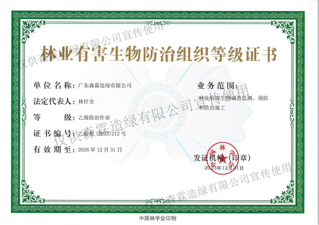 • 林业有害生物防治作业乙级资质