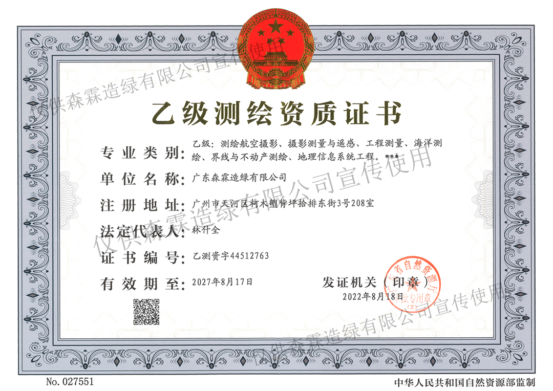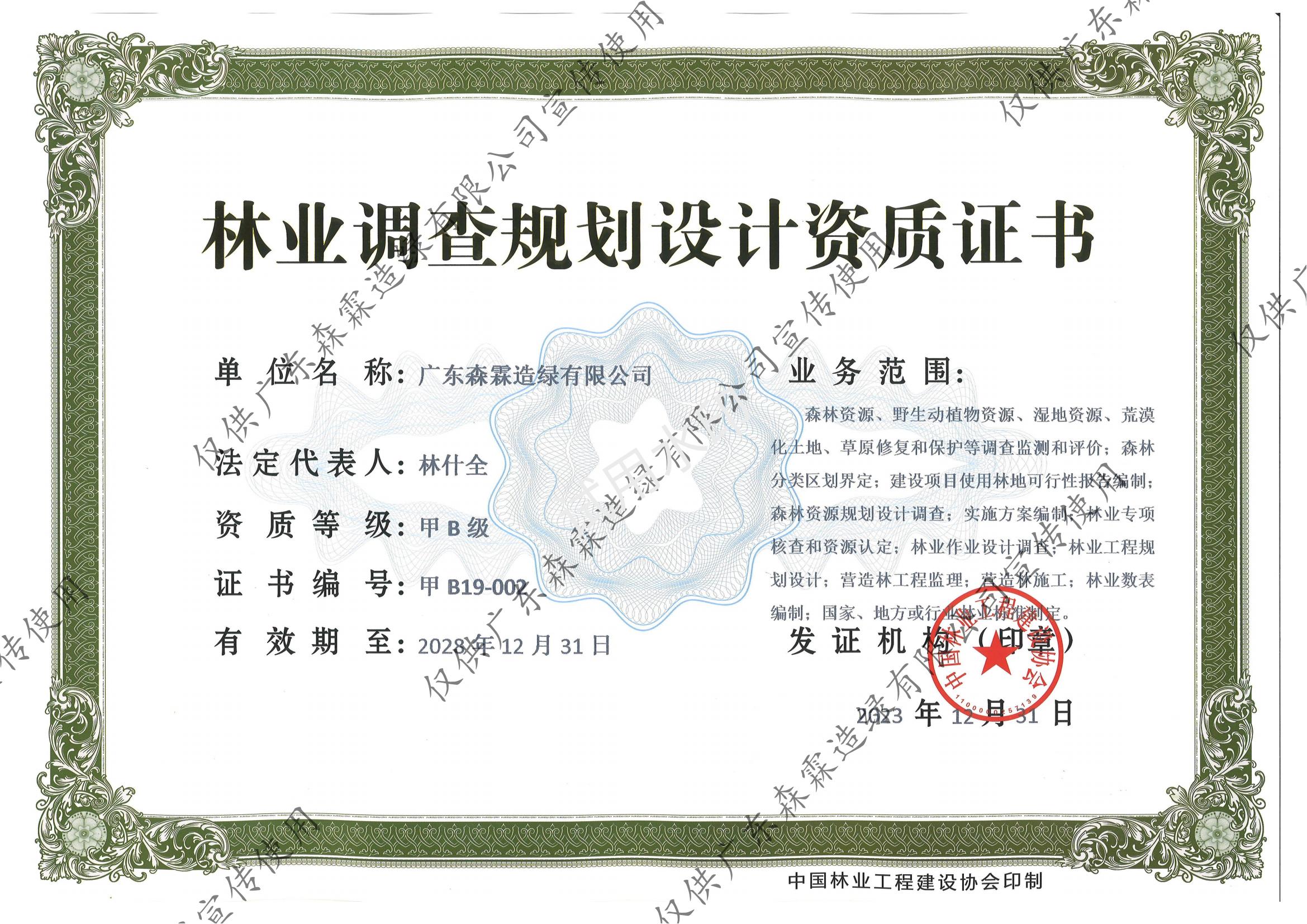 • 林业视察妄想设计资质证书(甲B级)